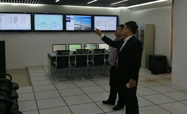 張主任向?qū)O院長介紹江蘇省長大橋梁健康監(jiān)測數(shù)據(jù)中心