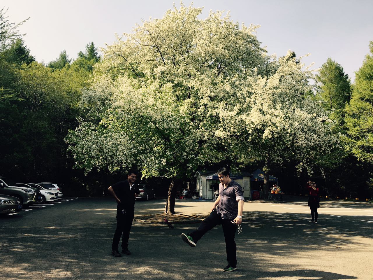 途中大家互幫互助,踢毽子、跳繩、野餐、拍照、坐纜車(chē)看美景。